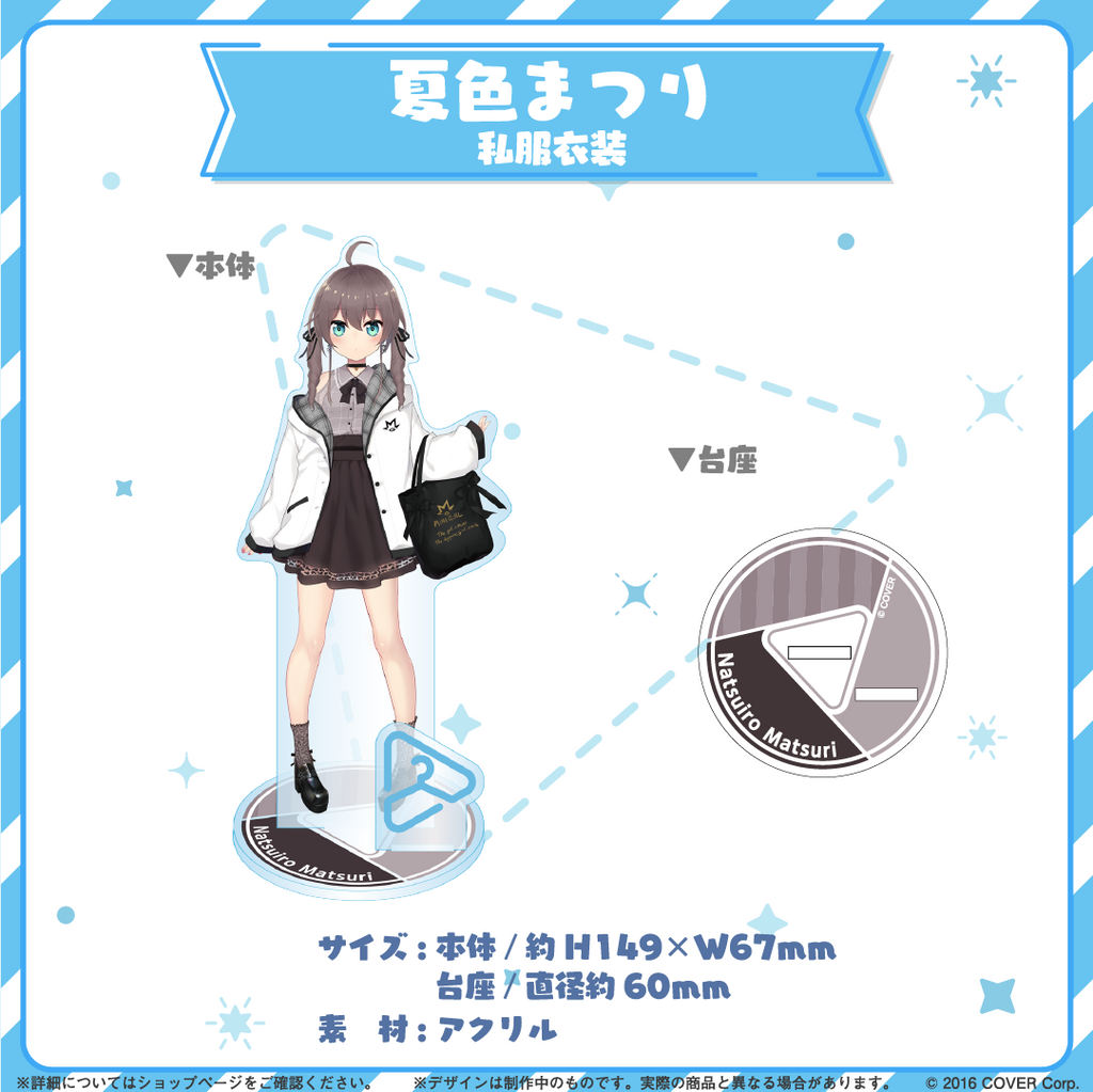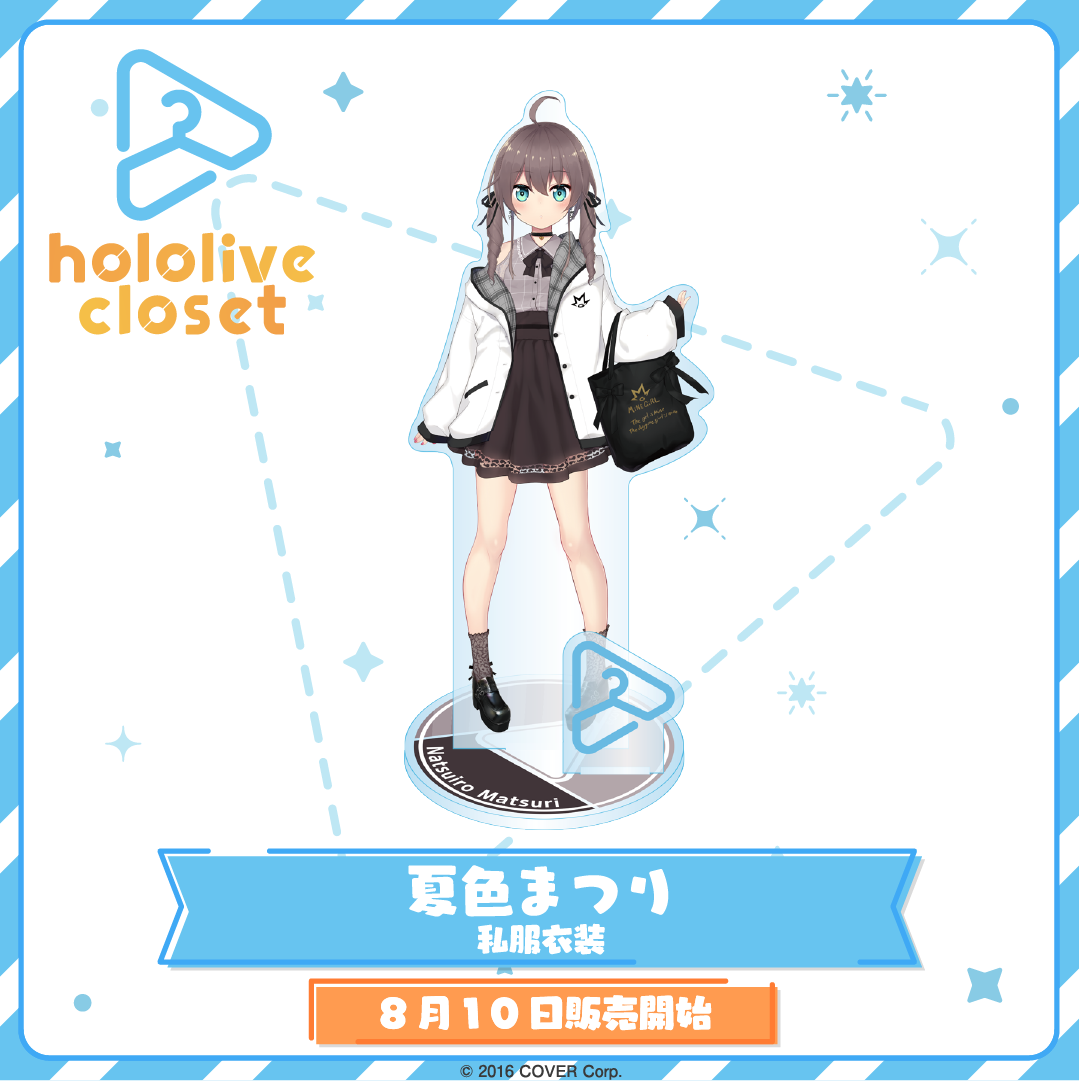 Tủ quần áo hoolive, một loạt các giá đỡ bằng acrylic trưng bày nhiều trang phục khác nhau của các tài năng sản xuất hoolive, vừa có mặt tại cửa hàng! Hãy sở hữu ngay giá đỡ bằng acrylic Casual Outfit của Natsuiro Matsuri! 〈Giới hạn mua hàng〉 Tối đa 10 sản phẩm cho mỗi lần mua. ◆Thông tin Vui lòng nhấp vào đây để biết thông tin về「tủ quần áo hoolive」