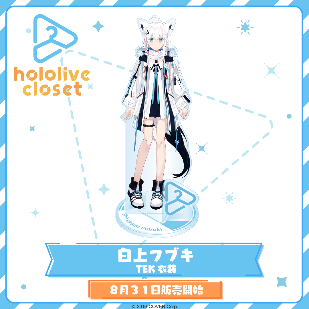 Tủ quần áo hoolive, một loạt các giá đỡ acrylic trưng bày nhiều trang phục khác nhau của các tài năng sản xuất hoolive, vừa có mặt tại cửa hàng! Hãy sở hữu ngay giá đỡ acrylic TEK Outfit của Shirakami Fubuki! 〈Giới hạn mua hàng〉 Tối đa 10 sản phẩm cho mỗi lần mua.◆Thông tin Vui lòng nhấp vào đây để xem danh sách sản phẩm「tủ quần áo hoolive」