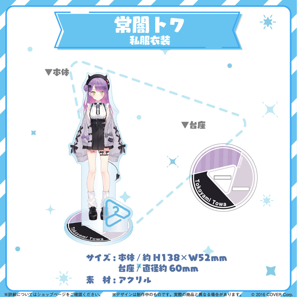 Tủ quần áo hoolive, một loạt các giá đỡ bằng acrylic trưng bày nhiều trang phục khác nhau của các tài năng sản xuất hoolive, vừa có mặt tại cửa hàng! Hãy sở hữu ngay giá đỡ bằng acrylic trang phục thường ngày của Tokoyami Towa! 〈Giới hạn mua hàng〉 Tối đa 10 sản phẩm cho mỗi lần mua.◆Thông tin Vui lòng nhấp vào đây để xem danh sách sản phẩm「tủ quần áo hoolive」*