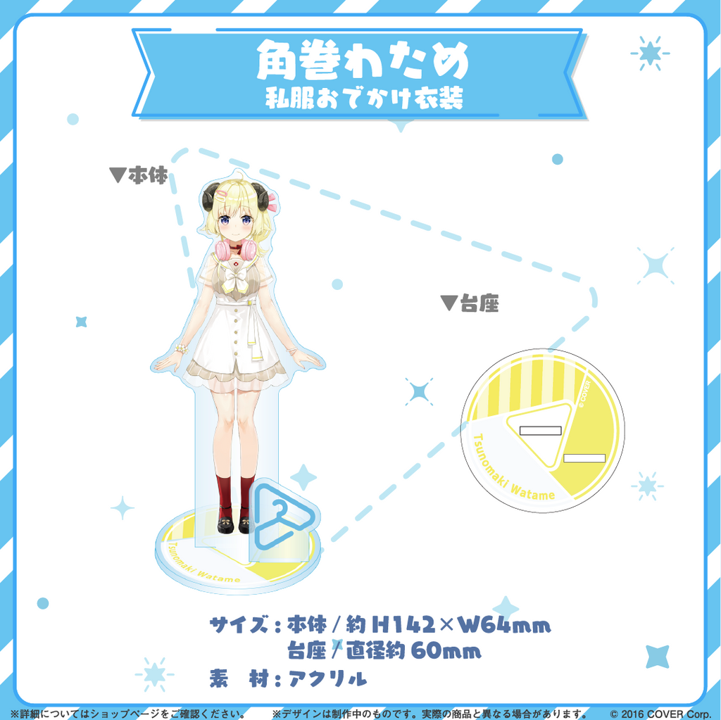Tủ quần áo hoolive, một loạt các giá đỡ bằng acrylic có nhiều trang phục khác nhau của các tài năng sản xuất hoolive, vừa có mặt tại cửa hàng! Hãy sở hữu ngay giá đỡ bằng acrylic Casual Street Outfit của Tsunomaki Watame! 〈Giới hạn mua hàng〉 Tối đa 10 sản phẩm cho mỗi lần mua.◆Thông tin Vui lòng nhấp vào đây để biết thêm về 「tủ quần áo hoolive」Pro