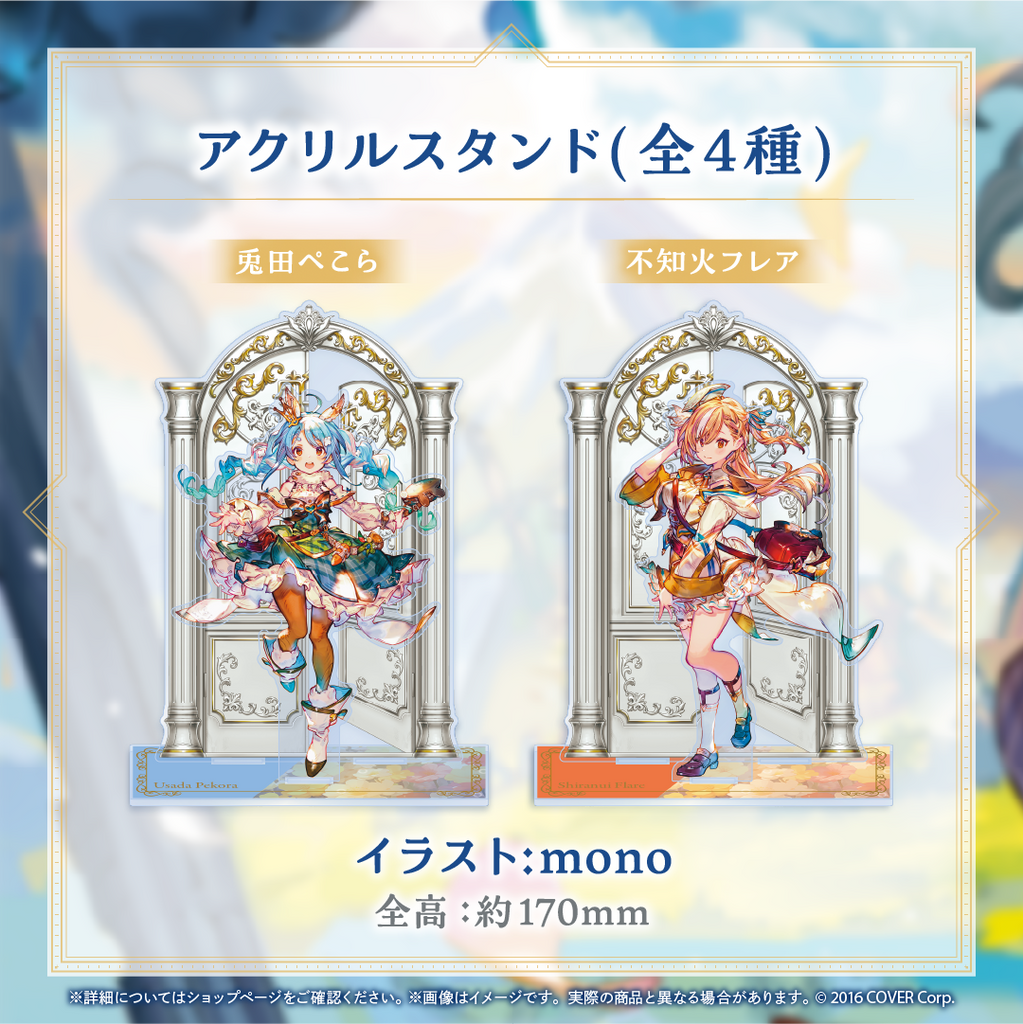 Sản phẩm kỷ niệm cho “HOLOLIVE FANTASY ~Beyond the Doors~”, một dự án phát trực tiếp đặc biệt của hololive thế hệ thứ 3 “HOLOLIVE FANTASY”. Sản phẩm này sẽ được bán như một sản phẩm thông thường. * Có thể sẽ có các đợt bán sản phẩm tiếp theo trong tương lai. * Xin lưu ý rằng việc bán sản phẩm có thể kết thúc mà không cần thông báo trước. *