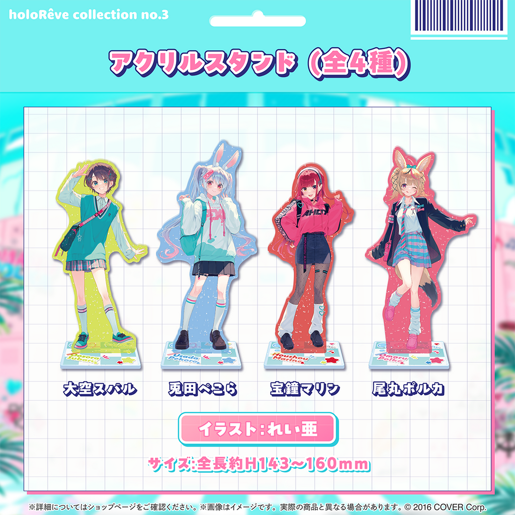 Một thương hiệu sản phẩm mới dành riêng cho cộng đồng fan nữ của bộ sưu tập hololive! số 3, bao gồm Oozora Subaru, Usada Pekora, Houshou Marine và Omaru Polka. Tên gọi “holoRêve” xuất phát từ mong muốn mang đến cho các fan nữ một loạt sản phẩm tràn ngập những giấc mơ khiến trái tim họ rung động. ◆ Thông tin liên quan